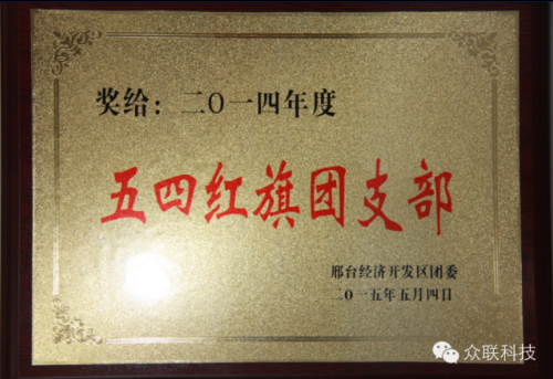 今年“五四”青年節(jié)期間,共青團(tuán)開發(fā)區(qū)委表彰了區(qū)內(nèi)一批先進(jìn)團(tuán)組織和先進(jìn)團(tuán)員,我公司榮獲了2014年度“五四紅旗團(tuán)支部”榮譽(yù)稱號。