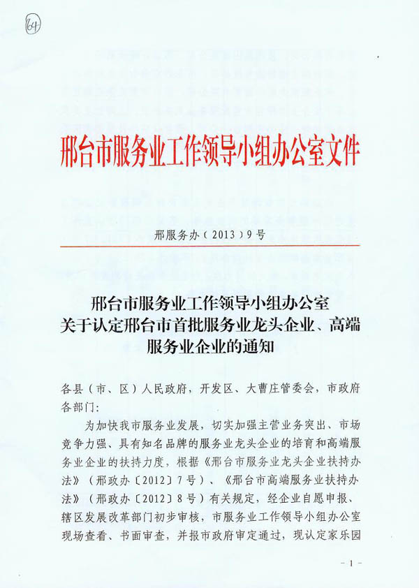 2013年9月 我公司被認定為邢臺市首批高端服務業(yè)企業(yè)