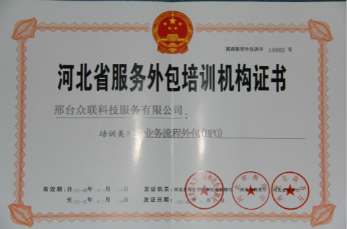 鑒于公司2011年12月申請(qǐng)《河北省服務(wù)外包企業(yè)證書》和《河北省服務(wù)外包培訓(xùn)機(jī)構(gòu)證書》兩項(xiàng)證書有效期限三年到期,我公司于2014年12月再次向河北省商務(wù)廳申請(qǐng)延續(xù),經(jīng)省商務(wù)廳審核,我公司目前發(fā)展情況符合河北省服務(wù)外包企業(yè)和河北省服務(wù)外包培訓(xùn)機(jī)構(gòu)評(píng)定標(biāo)準(zhǔn),于2015年3月成功延續(xù)《河北省服務(wù)外包企業(yè)證書》和《河北省服務(wù)外包培訓(xùn)機(jī)構(gòu)證書》。